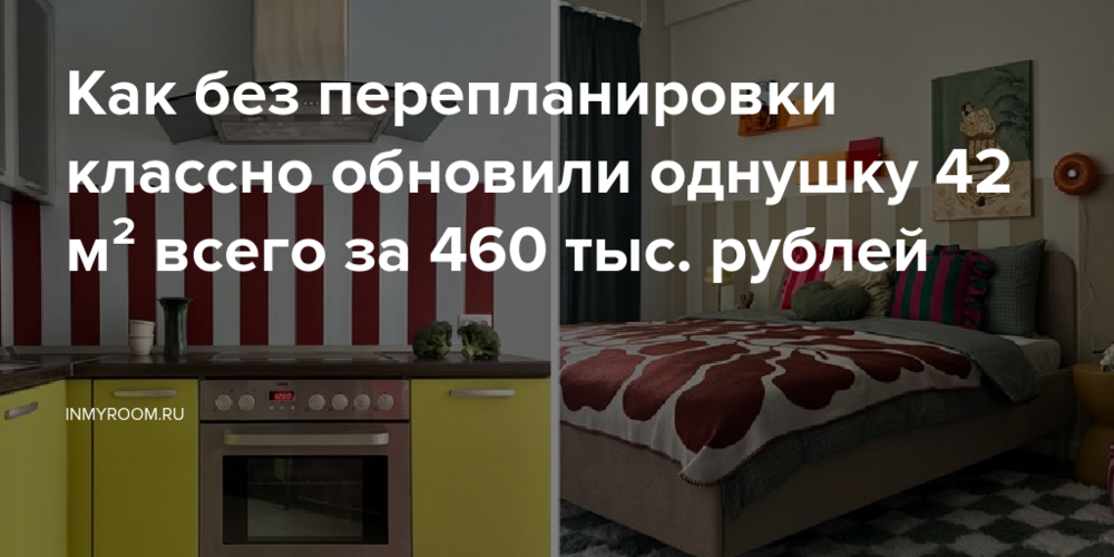 В основной комнате созданы новые сценарии использования пространства с акцентом на цвет, тактильность и функциональность. Стены перекрасили в спокойный, но выразительный оттенок, который послужил фоном для яркого текстиля и композиции из картин с полками. Мебель полностью заменили на более современную по форме и масштабу — лаконичную, но обладающую индивидуальностью.