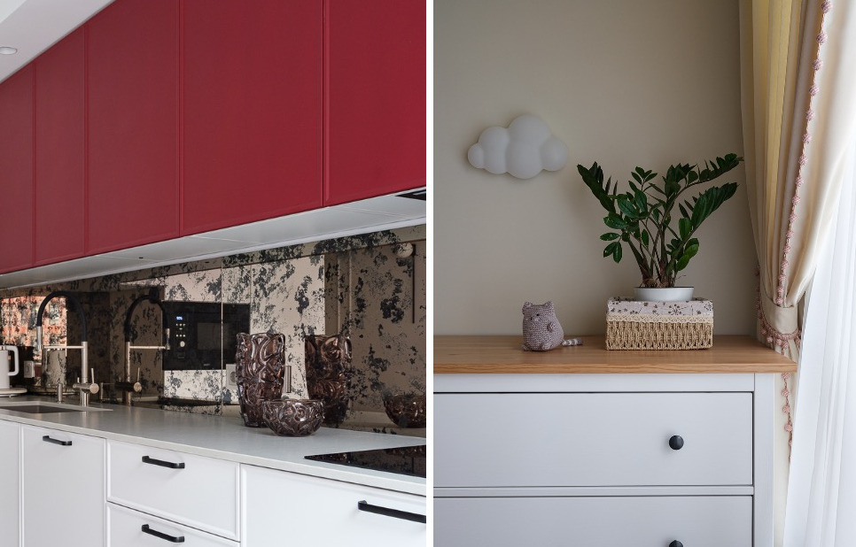 Дизайнер Татьяна Казьмина создала интерьер для молодой семьи с маленьким ребенком. Заказчики выбрали минимализм с яркими акцентами, поэтому системы хранения продумали так, чтобы визуальный шум был минимальным. В проекте предусмотрены кухня-гостиная, мастер-зона со спальней, гардеробной и санузлом, брутальный кабинет, детская и гостевая ванная. Вся корпусная мебель, включая кухню, изготовлена на заказ по индивидуальным размерам. Показываем пять продуманных решений для хранения.