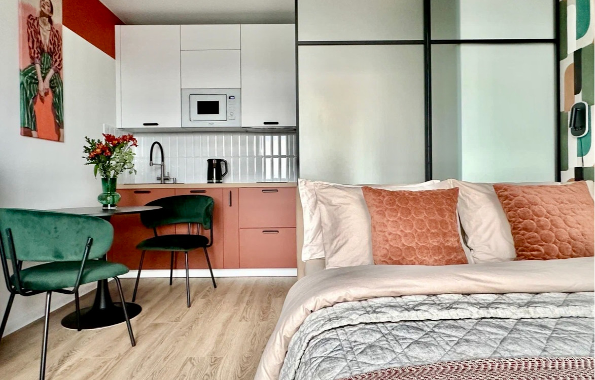Хоумстейджеры из студии «Хоумстейджинг с любовью» оформили эту студию для долгосрочной аренды. Ремонт уже был завершен — предстояло добработать отделку от застройщика, а также полностью укомплектовать квартиру мебелью, техникой, текстилем и декором. Ставку сделали на яркий функциональный интерьер. Посмотрим, что получилось.