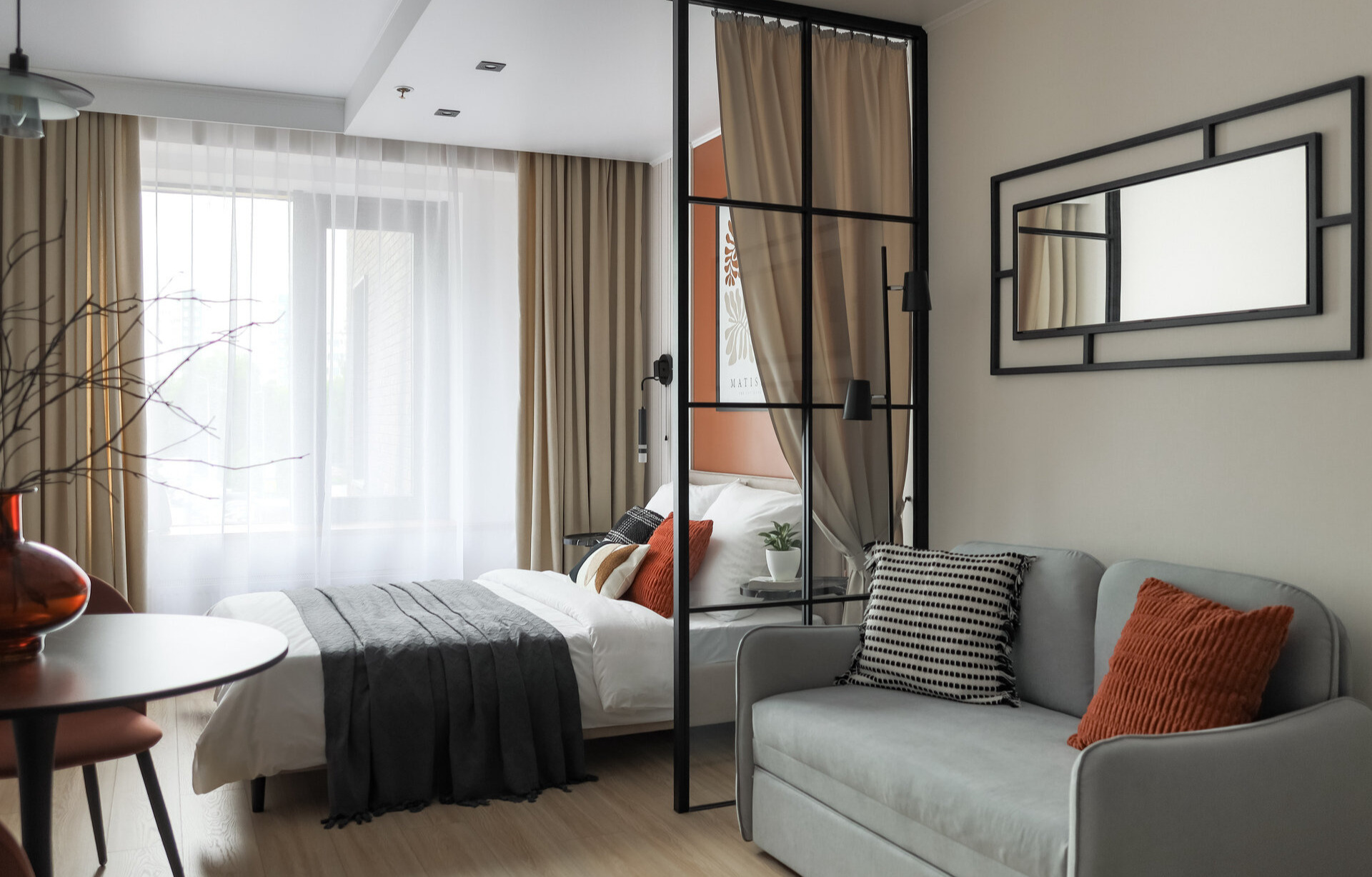 Никто не предлагает вернуться к глухим стенам и темным коридорам. Современное зонирование работает тоньше. Раздвижные стеклянные перегородки, которые можно открыть, когда приходят гости, и закрыть, когда нужна тишина. Перегородки из реек, которые пропускают свет, но визуально разделяют зоны. Двери-книжки, которые складываются к стене и не занимают места.