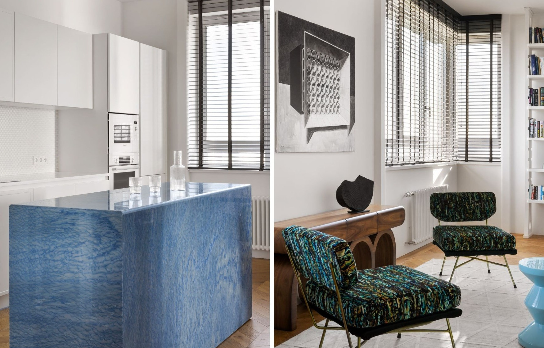 Дизайнер Валерия Разумова разработала проект квартиры для молодой пары, ценителей современного дизайна и советской эстетики. Задача стояла не только в создании светлого, комфортного и динамичного пространства, но и в том, чтобы наполнить его характером — отразить увлечения заказчиков. Их любовь к книгам, интерес к советскому и современному искусству, а также планы по формированию личной арт-коллекции стали смысловым стержнем всей концепции.