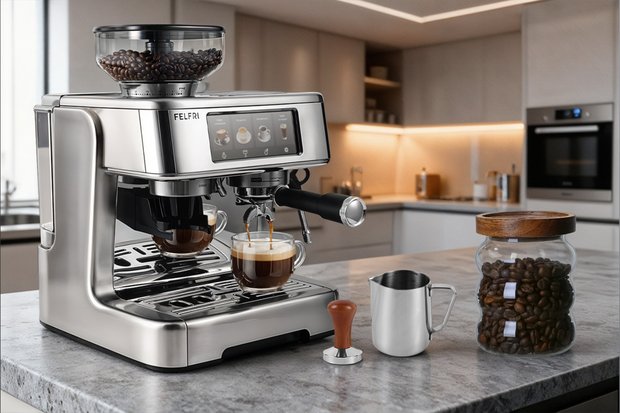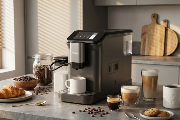 Главное преимущество автоматической кофемашины — экономия денег на походы в кофейни. Если покупаете капучино каждое утро за 300-400 рублей, в месяц набегает 9 000-12 000 рублей. Кофемашина FELFRI окупается за несколько месяцев, при этом вы пьете свежемолотый кофе из качественных зерен, а не растворимый или из капсул. Встроенная кофемолка, автоматический капучинатор, несколько режимов приготовления — у вас появится домашняя кофейня, которая открывается по одному нажатию кнопки.