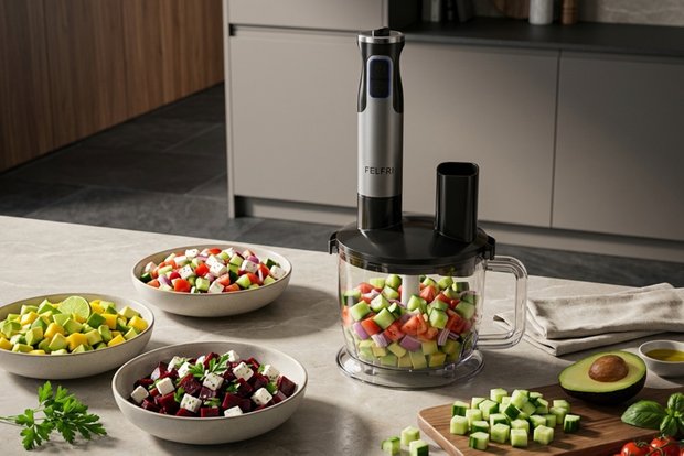 Блендер-комбайн FELFRI FHB-008 с кубикорезом — решение для тех, кто хочет готовить быстро и без лишних хлопот. Взбил основу для смузи за минуту, и завтрак готов. Мощный мотор справляется с замороженными ягодами, при этом блендер компактный и легко моется. Функция кубикореза пригодится для нарезки фруктов и овощей в другие блюда — например, можно быстро нарезать яблоко, киви или огурец ровными кубиками для салата или топпингов.