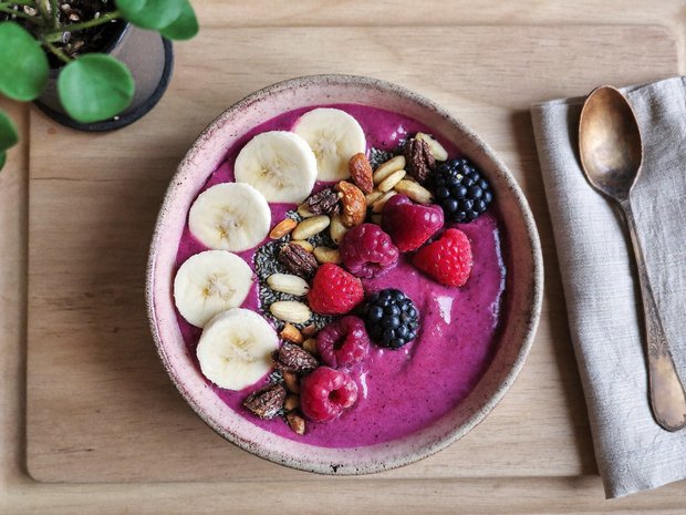 - Украсьте смузи-боул семенами чиа, орехами и свежими ягодами.
