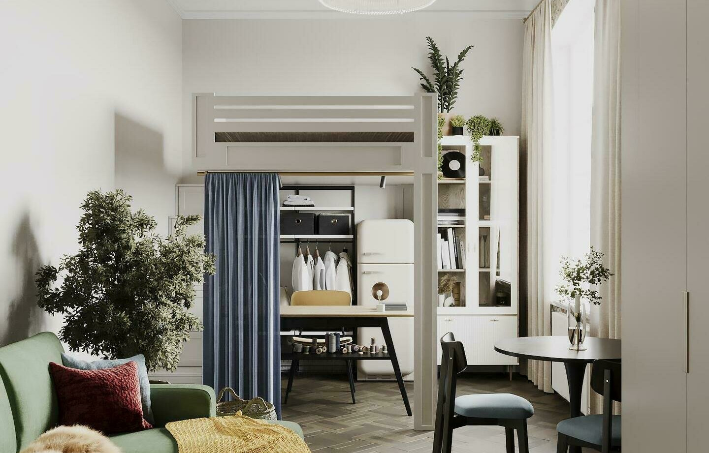 - В хрущевках с потолками 2,48 м антресоль съедает визуальный объем, а в сталинках с потолками 3 м работает идеально;