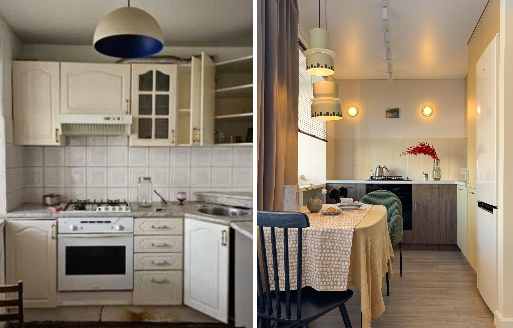 Бывший зимний холодильник под окном демонтировали и освободили место для уютной зоны. Теперь там стоят барные стулья, образуя идеальный уголок для утреннего кофе и быстрых перекусов. Наслаждаться завтраком, любуясь видом на аллею, — одно удовольствие.