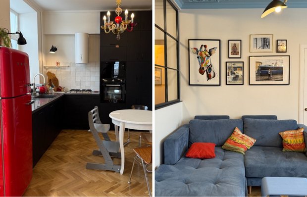 Эту трешку Мария вместе с мужем Сергеем полностью переделали без помощи дизайнера. Квартира находится в знаменитых Красных домах Москвы. Ранее это была классическое профессорское жилье, буквально заставленное книжными шкафами. Мария и Сергей самостоятельно разработали новую планировку и дизайн, гармонично объединив современные решения, винтажную мебель и любимые предметы из своей прошлой жизни.