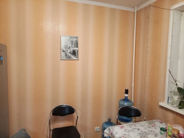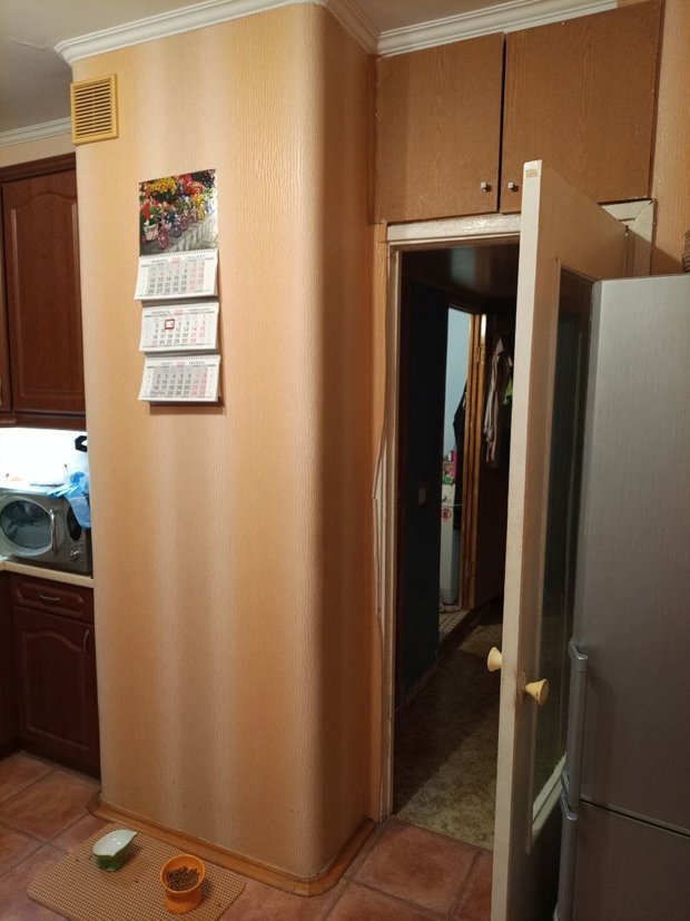 Кухня Татьяны из Митино простояла без изменений с 2008 года. Коричневый гарнитур, полосатые обои цвета выгоревшего солнца, маленькая куцая люстра, стеклянный стол, который никуда не встает удобно, и ламповый телевизор, занимающий одну четвертую поверхности.