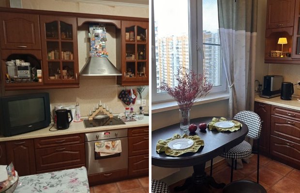 Пространство было без баланса: с одной стороны – нагромождение техники и вещей, а с другой абсолютно голая стена. Татьяна сама признавалась: хотела что-то изменить, но не знала что именно. Понимала только, что стол неудобный, а кухня «какая-то устаревшая».