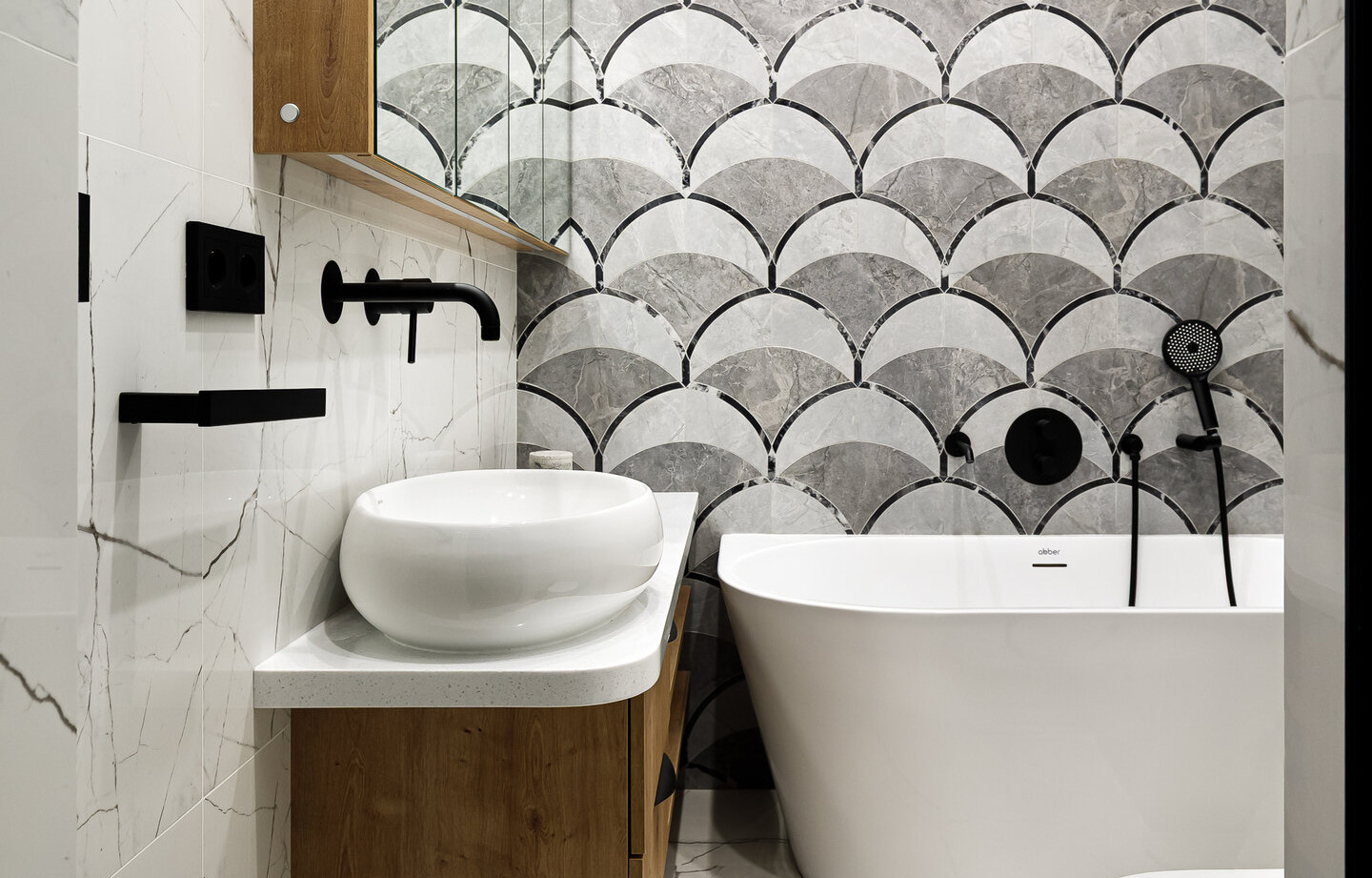 Ширина шва: тонкий шов (1,5-2 мм) дает более монолитный вид поверхности, широкий шов (5-8 мм) подчеркивает плитку как отдельный элемент. В маленькой ванной предпочтительнее тонкий шов.