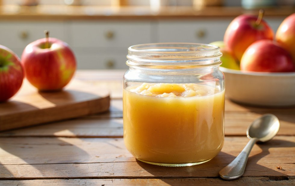 В детском пюре из яблок обычно содержится только яблоко. Иногда аскорбиновая кислота как антиоксидант. Без загустителей, красителей, ароматизаторов, консервантов. Это честный состав.