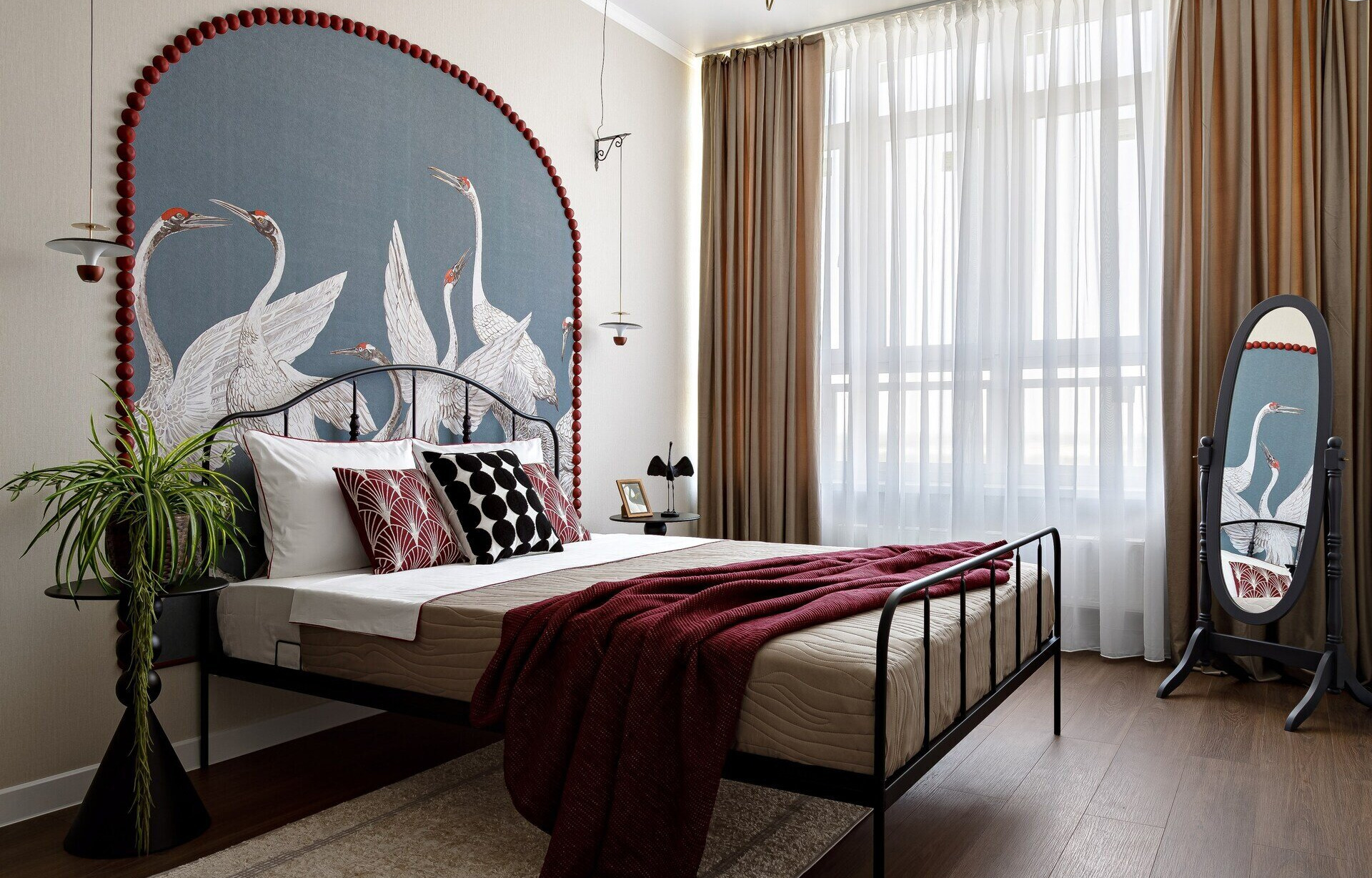 Рулонные шторы или жалюзи — компактное решение для небольших спален. Они эффективно блокируют свет и не занимают места, но хуже сохраняют прохладу, чем плотный текстиль.