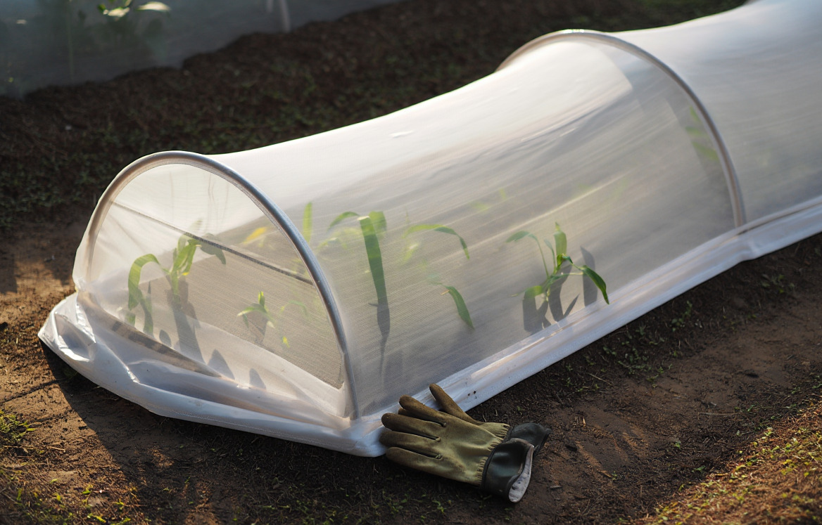 Укрывной материал кладут на дуги, а не прямо на растения. Контакт материала с листьями при минусовой температуре дает обморожение в точках контакта. Дуги из толстой проволоки, металлопластиковых труб или гибкого шланга создают воздушную подушку.