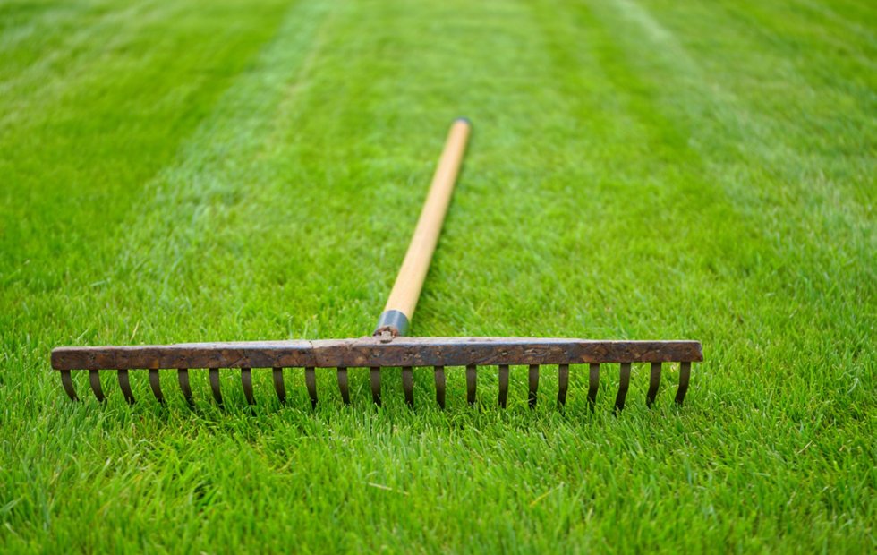 - Расчесывание граблями в апреле убирает войлок и дает трава доступ к свету и воздуху;
