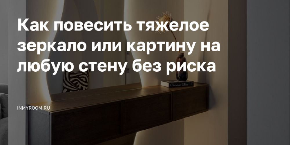 Тяжелое зеркало, упавшее со стены, битое зеркало, поврежденный пол и потенциальная травма. При этом правила надежного крепления тяжелых предметов просты и применимы к любому типу стен. Главное, подобрать правильный крепеж под конкретный материал и не экономить на точках крепления.