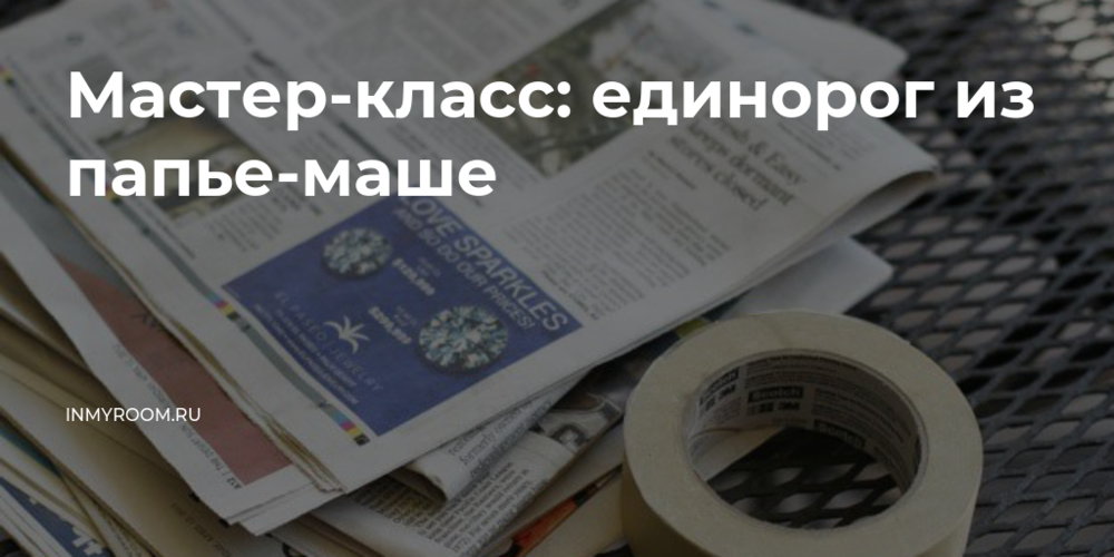 Формируем из газеты три шара, все разного размера. Соединяем их между собой при помощи клейкой ленты. Оборачиваем получившуюся конструкцию газетным листом и закрепляем ее лентой, тем самым создавая контур головы единорога. Из газеты также делаем шею и крепим ее к голове. Это и будет основа для нашего изделия.