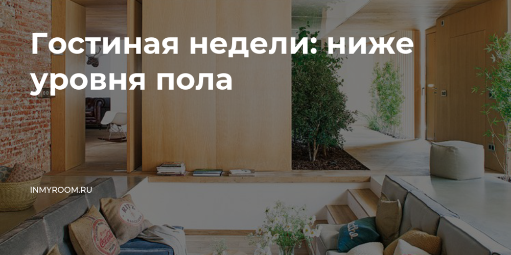 В этот раз гостиной недели мы выбрали очень уютное помещение с одним из самых необычных способов зонирования. Кроме оригинальных архитектурных приемов этот дом так же отличается очень необычной планировкой и растущими прямо в жилой зоне деревцами. Но всё это мы встречали и раньше, а вот гостиную «ниже уровня пола» видим впервые.