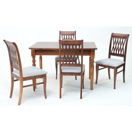 Ищете функциональный и красивый обеденный комплект, который впишется как в классический, так и в современный интерьер? Обеденная группа «Рич» объединяет стол размером 120х80 см и четыре удобных стула с оригинальной спинкой — идеальное решение для кухни или столовой зоны от 12 кв.м.Три главных преимущества: