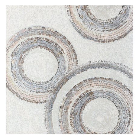 Хотите добавить в интерьер акцент, который работает в любом стиле? Панно Tessera №1 с абстрактными концентрическими кругами впишется в скандинавскую гостиную, минималистичную спальню или современный кабинет. Размер 80×80 см — достаточно крупный, чтобы заполнить пустую стену над диваном или в прихожей.