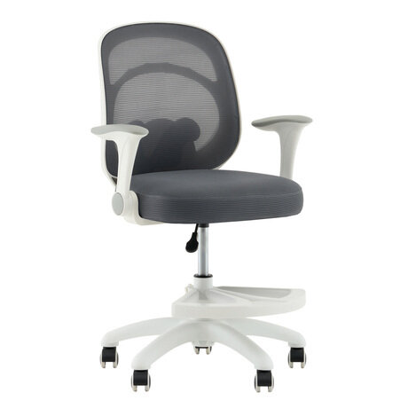 Комфорт и безопасность Кресло TopChairs Panda создано с заботой о здоровье начинающего пользователя: мягкое сиденье и анатомическая спинка с поясничной поддержкой обеспечивают правильную осанку и комфорт даже при длительной учёбе или творчестве. Благодаря газ-лифту второго класса высота регулируется от 41,5 до 49,5 см, а общая высота кресла составляет от 81,5 до 90,5 см, что делает его универсальным для разных возрастов. Очаровательный дизайн Задняя часть спинки украшена фигуркой панды — стильным акцентом, который украсит любую комнату. Светлая обивка из сетки в сером цвете гармонирует с белым корпусом, придавая креслу свежий и аккуратный вид. Функциональность и надёжность Модель оснащена удобной подставкой для ног и регулируемыми подлокотниками и роликами из полипропилена — всё для комфорта и безопасности. Прочная крестовина и устойчивые колёсики из полипропилена гарантируют долговечность. Кресло выдерживает нагрузку до 120 кг, а вентиляционная сетка на спинке пре