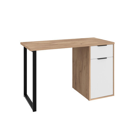 Ищете функциональный рабочий стол, который поместится даже в небольшой комнате? Письменный стол С-408 занимает всего 1,2 м в ширину и 55 см в глубину, но при этом включает полноценную систему хранения с ящиком и тумбой. Идеальное решение для домашнего офиса, детской комнаты или рабочего кабинета. Три главных преимущества: - Компактный размер — подходит для помещений от 9 м² и легко встраивается в любой интерьер - Прочная конструкция — выдерживает до 50 кг благодаря столешнице из ЛДСП толщиной 25 мм - Универсальное хранение — ящик для канцелярии и тумба с полкой внутри для более крупных предметов Стол отлично подойдет как для взрослых, так и для подростков. Оптимален для комнаты шириной от 2 метров. Высота 76 см соответствует эргономическим стандартам для комфортной работы, а контрастное сочетание теплого древесного оттенка с белыми фасадами и черными металлическими ножками создает современный образ в стиле лофт или скандинавском дизайне.Технические характеристики: