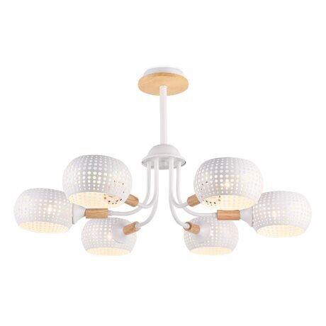 - Равномерное освещение — 6 плафонов распределяют свет по всему пространству без теней - Компактная высота 370 мм — подходит для помещений со стандартными потолками от 2,5 метров - Комбинация материалов — белый металл и деревянные элементы вписываются в любой современный интерьерИдеальна для: