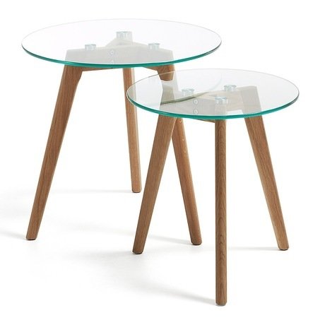 Набор журнальных столиков Julia Grup Brick из массива дерева со стеклянной столешницей