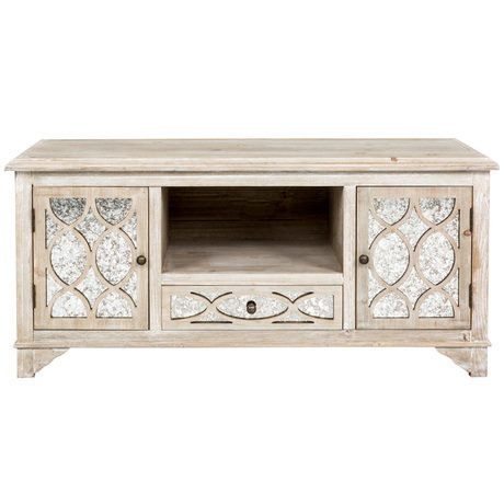 С тумбой «Миракль» мы проводим вместе все вечера! Оттенки белого и кремового, бесконечные орнаменты-скульптуры и множество зеркал, рассыпанных по фронтальной поверхности тумбы «Миракль», — этот предмет мог бы оказаться даже арт-объектом, если бы не его функциональные возможности: выдвижной ящик в основании тумбы, симметричные полки, скрытые за дверцами, и открытый ящик для особо значимых предметов. Всё это – центральный элемент спальни или гостиной, - тумба для телевизора «Миракль».