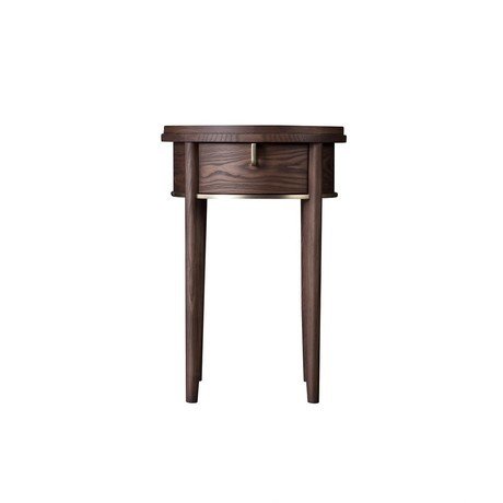 Миниатюрный приставной столик New Classic из обладающего неповторимой фактурой массива дуба в насыщенном и манящем цвете Rovere Tabacco. Изделие оснащено выдвижным ящиком с концептуальной фурнитурой, разработанной британским дизайнером.
