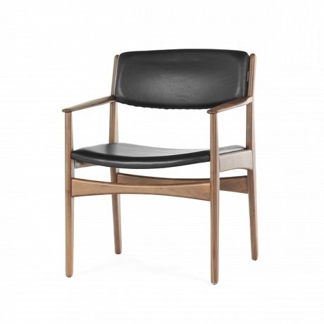 Материал, из которого изготовлен стул — американский орех. Благодаря своей прочности эта древесина популярна среди дизайнеров, создающих свою мебель на века — она крайне долговечна, поскольку обладает высокой плотностью. Говорить о благородстве дерева в интерьере лишний раз не стоит, натуральная текстура — всегда беспроигрышный вариант в оформлении презентабельных кабинетов и роскошных залов.