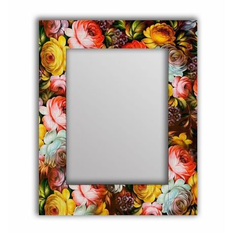 Настенное зеркало Жостовская роспись в раме из массива сосны 75х140