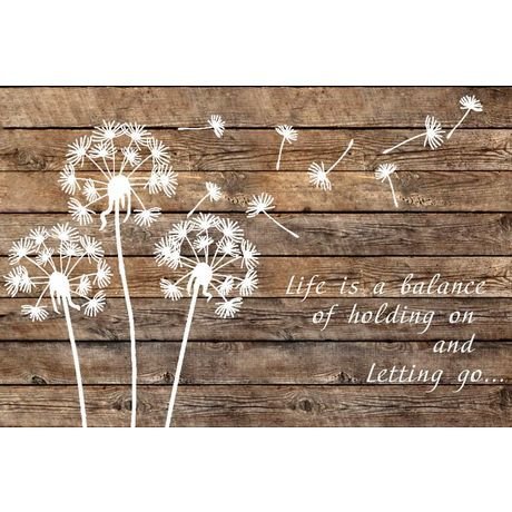 Картина на досках "Одуванчики на ветру" с изображением улетающих вдаль семян, прекрасно впишется в интерьер любого типа. Филосовская мысль переводится так: "Жизнь - это баланс между тем, что мы бережем и, что приходится отпустить..."
