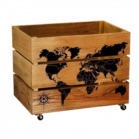 Ящик для хранения Карта мира из массива дуба на колесиках
