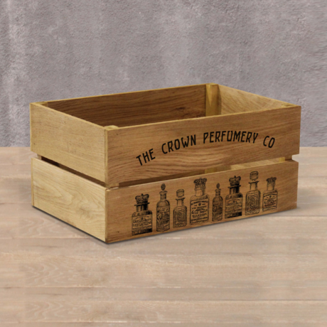 Деревянный ящик для хранения выполнен из дуба с оригинальным принтом.