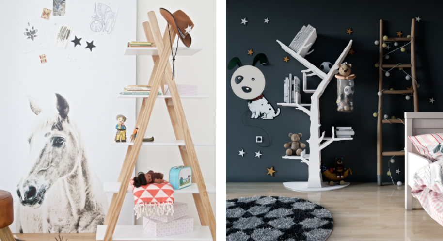 Без крупных систем хранения в детской не обойтись — в шкаф и комод можно спрятать основной объем вещей. Открытый стеллаж-вигвам De Eekhoorn Tipi Bookcase также станет помощником: здесь найдется место и для домашней мини-библиотеки, и для любимых игрушек с сувенирами.