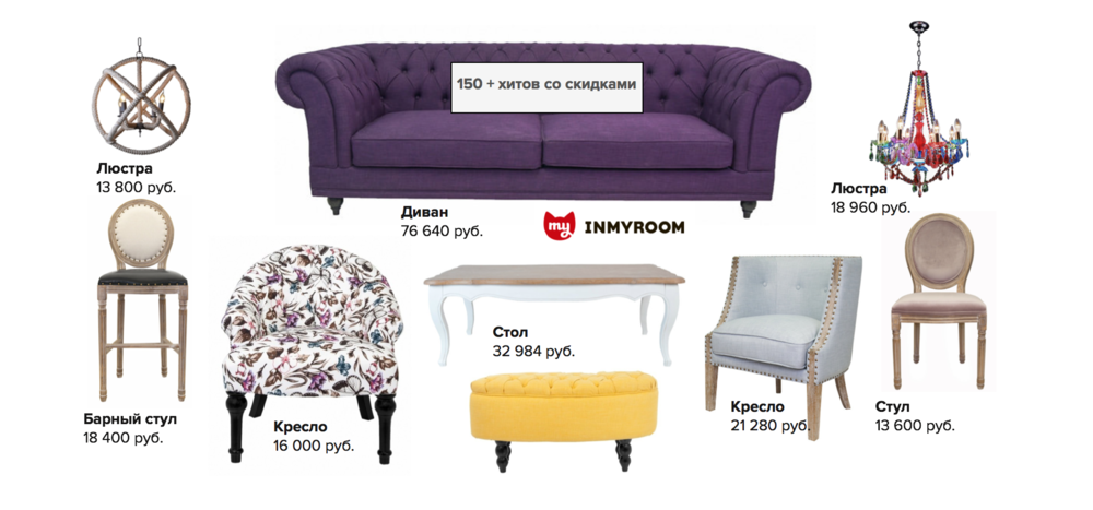 Мы выбрали более 150 самых популярных товаров - мягкие диваны, удобные стулья с текстильной обивкой, мини-кресла с цветочными принтами, а также разноцветные тумбочки, обеденные столы и самые актуальные в этом сезоне светильники. Все предметы с приятной скидкой – до 40% весь октябрь. Количество товаров со скидкой ограничено.
