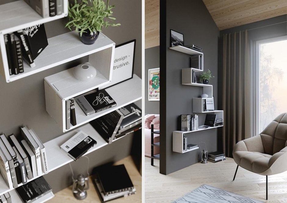 Например для тумбочек и комодов можно подобрать цвет на свой вкус, система полок-трасформеров позволяет создавать практически любые плавные композиции на стене и без видимых креплений. Похожая история с подвесами — светильники из мрамора, бетона и керамики можно смело комбинировать между собой.