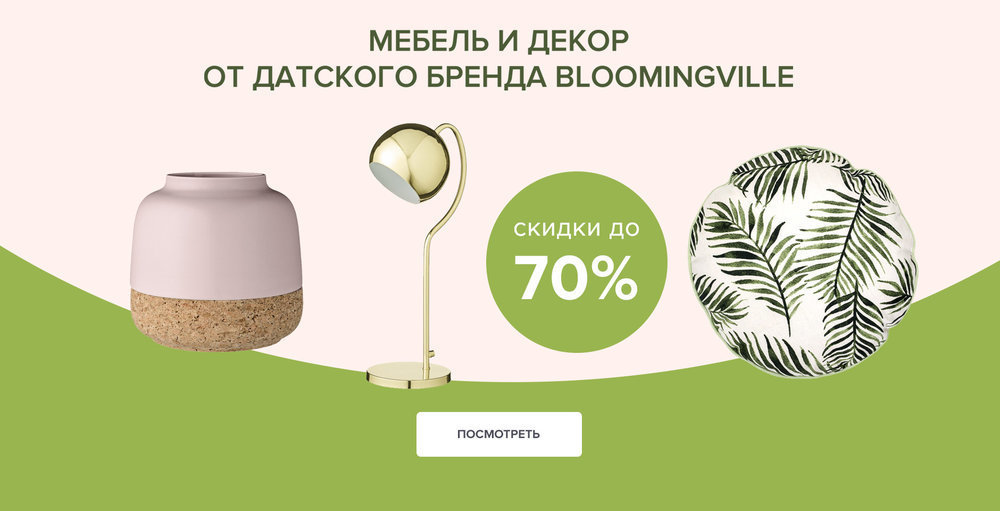 Товары Bloomingville создают теплую обстановку в каждом доме и приносят счастье своим владельцам. Вам точно понравятся столики и светильники простых форм, текстиль пастельных оттенков, посуда с ироничными надписями и декор, который хочется поставить на самое видное место.