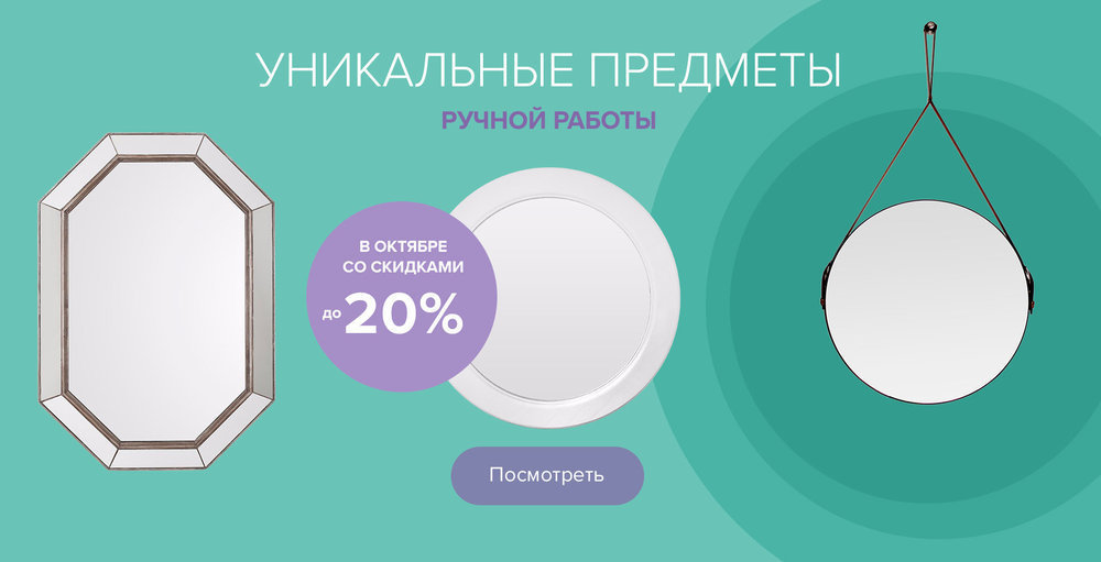 Весь октябрь на зеркала и тумбы из нашей подборки будут действовать скидки. Выбирайте — красивое винтажное зеркало Sebastien с искусственно состаренной рамой, изящное зеркало Melisande цвета Тиффани или яркая модель Scarlet в форме шестигранника. Какое из них вам нравится больше?