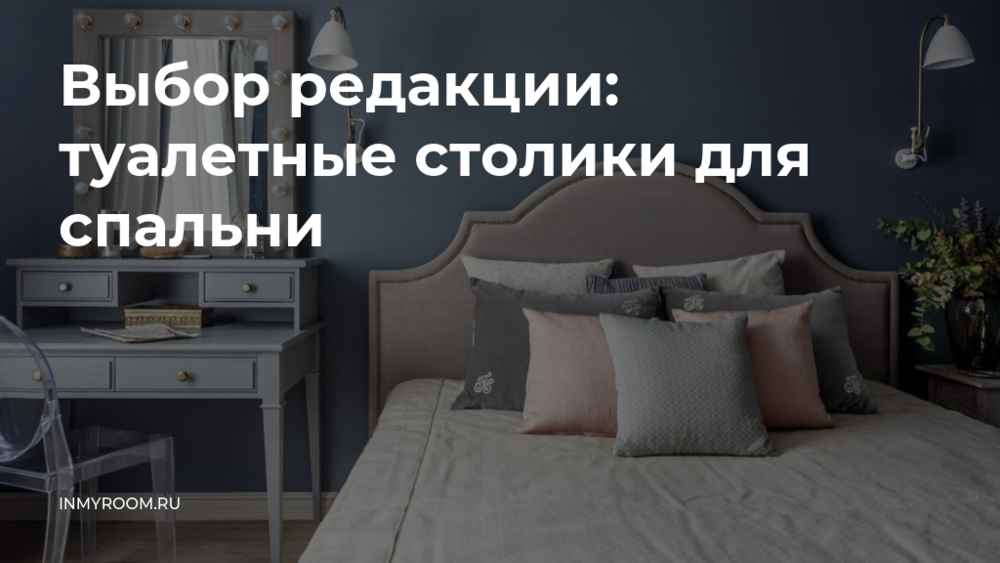 Не отказывайтесь от туалетного столика, даже если спальня совсем небольшая. Поставьте его вместо одной из прикроватных тумбочек. Лучше со стороны окна, чтобы на зеркало падало как можно больше естественного света.