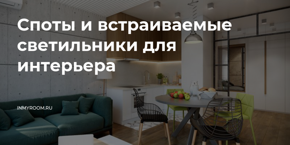 Потолочные споты и встраиваемые светильники — отличная альтернатива люстрам с плафонами. Особенно актуальны они в малогабаритках с низкими потолками: визуально не перегружают пространство и хорошо освещают комнату. Дизайнеры рекомендуют располагать светильники на расстоянии не менее 20 см от стен и оставлять между ними 100–150 см.