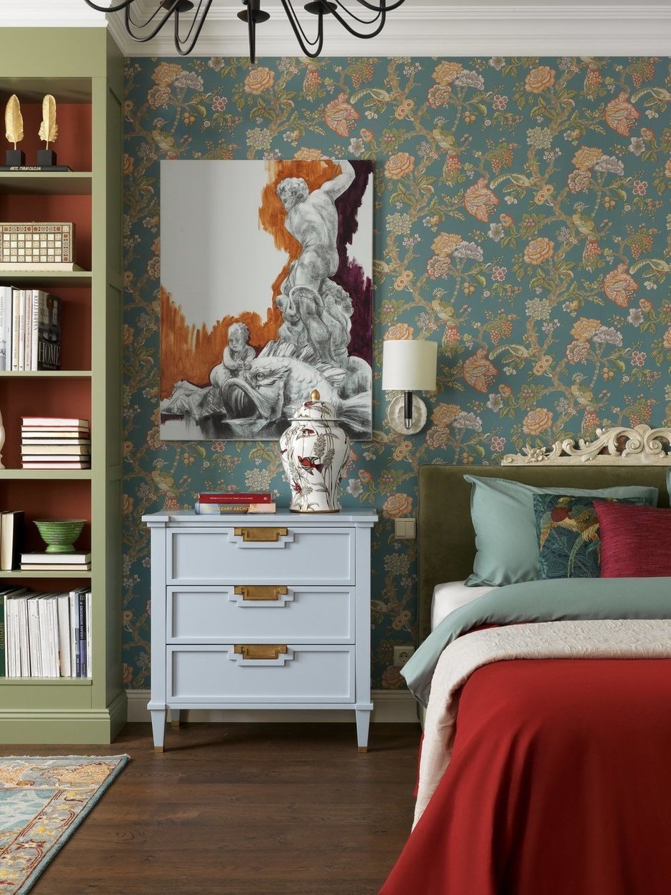 - в спальне невысокий комод может заменить одну из прикроватных тумбочек;