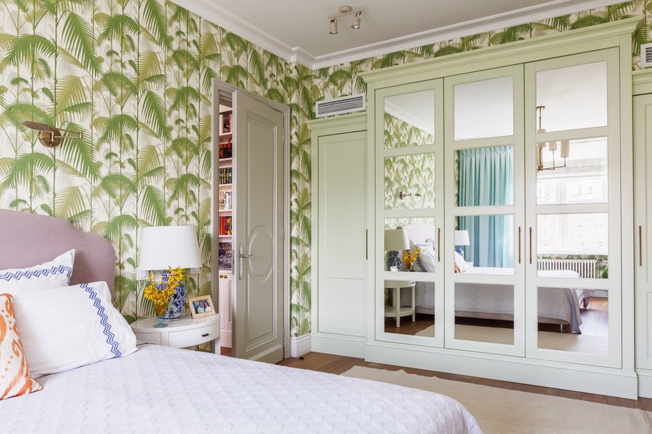 - шкаф с зеркальными фасадами визуально увеличивает маленькое пространство;